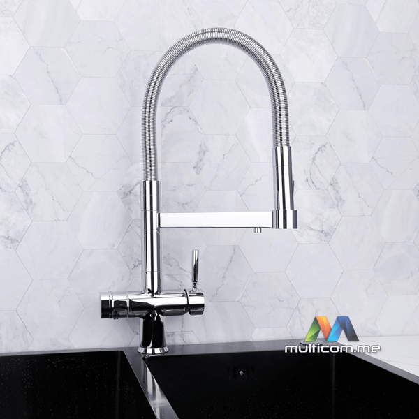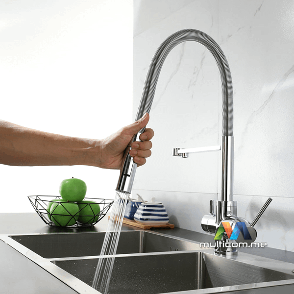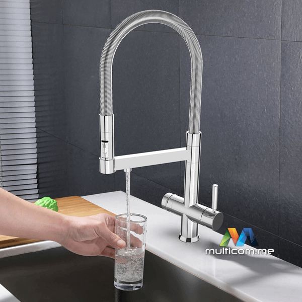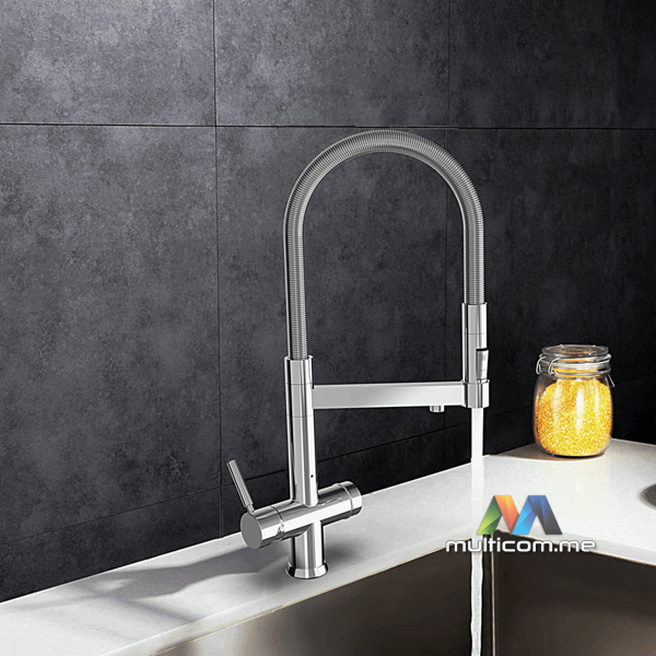 Specijalna česma za sudoperu sa odvojivim tušem koja ima dodatnu opciju da se poveže sa filterima za vodu ispod sudopere.