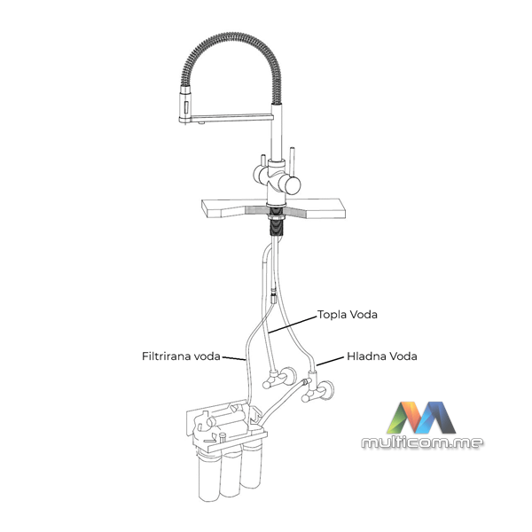 Dvije ručice – Jedna služi da sa njom puštaš vodu iz vodovoda (toplu/hladnu), dok druga propušta samo filtriranu i samim tim se štedi i na filterima i na prostoru.