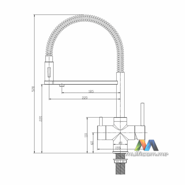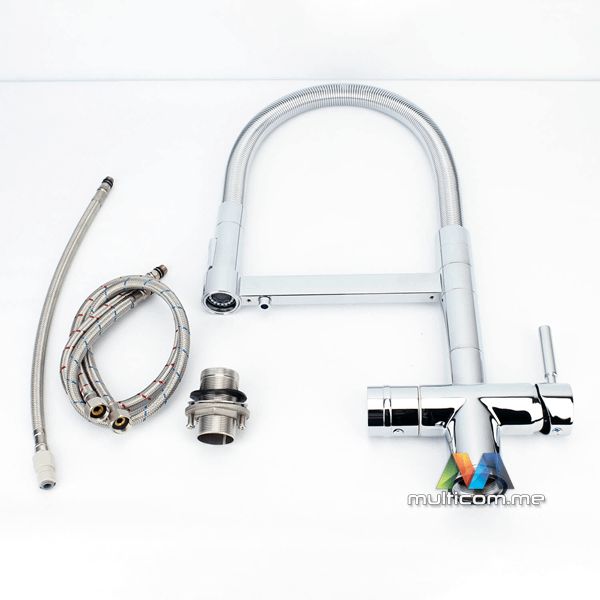 Voden Česma sa odvojivim tušem – Hrom │ Mogućnost povezivanja sa filterom za vodu │ Dvije ručice │ Odvojiv tuš │ Različite opcije mlaza na tušu