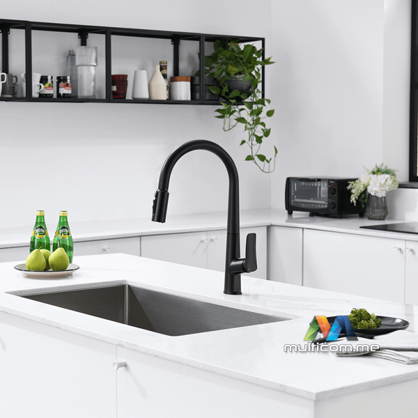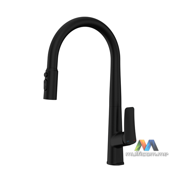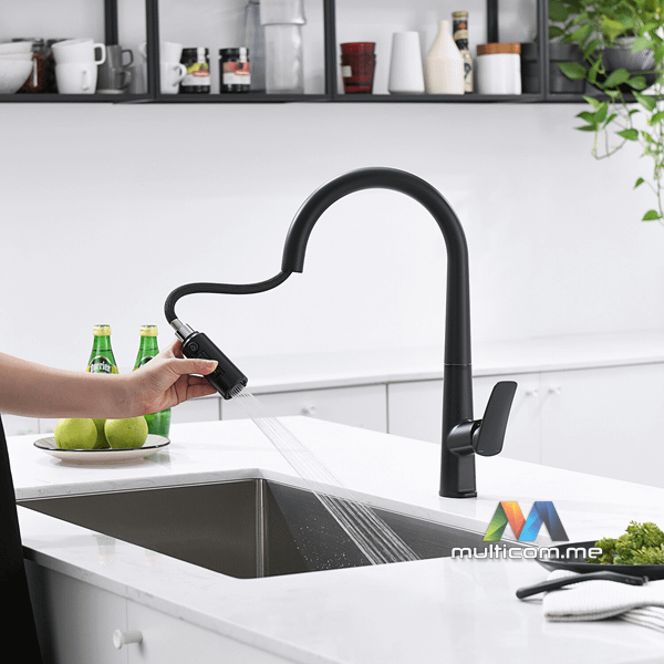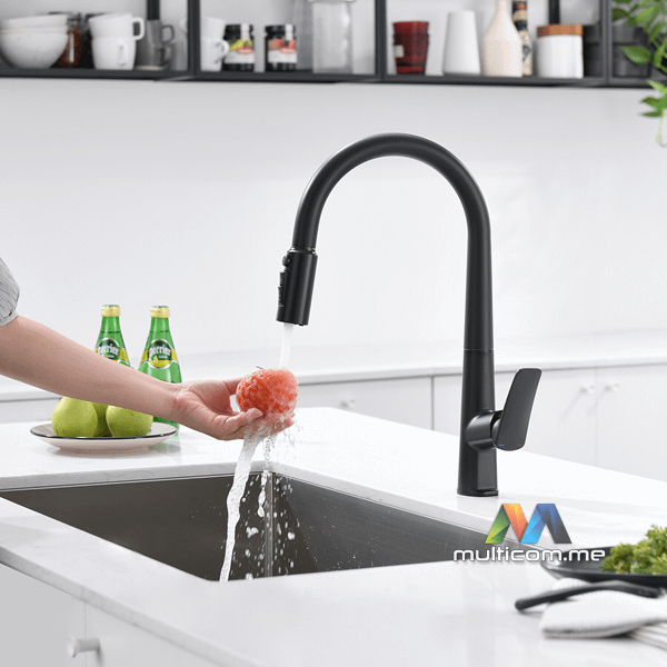 Voden Česma za vodu sa tušem na izvlačenje – viša – Crna Mat
