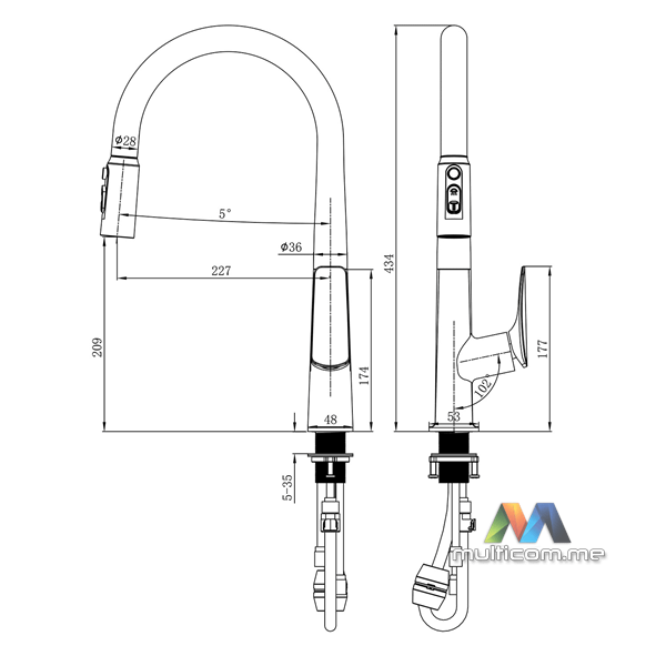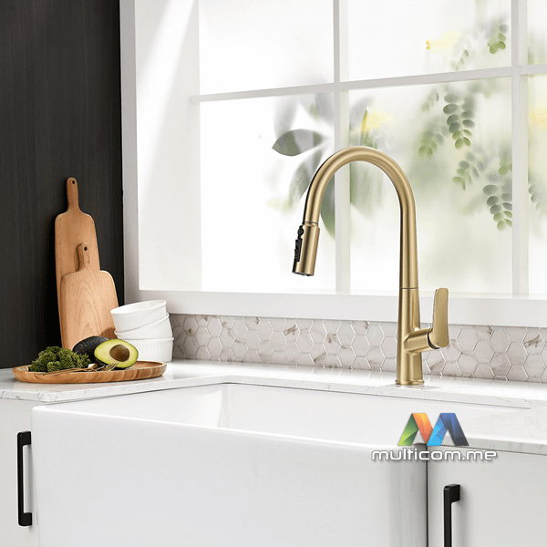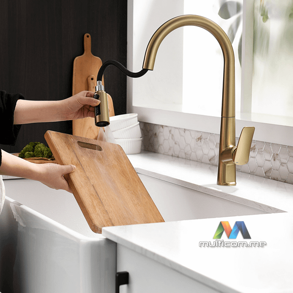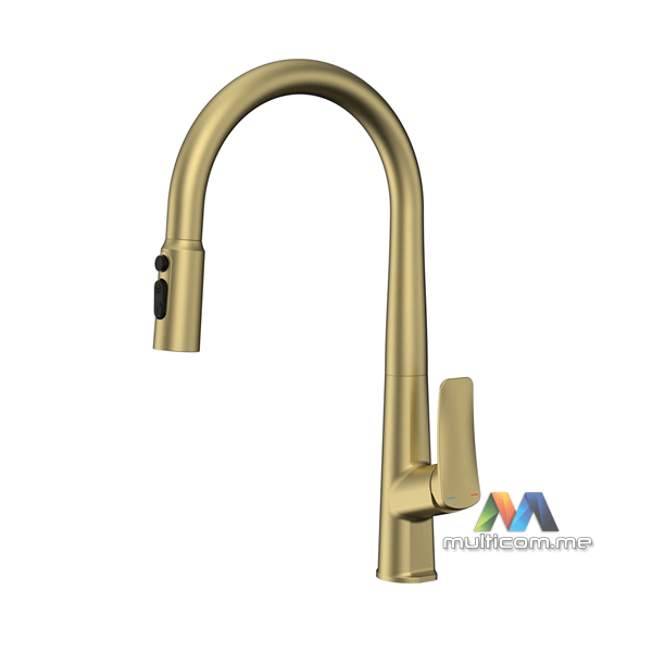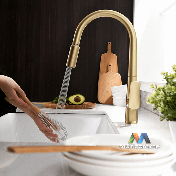 Voden Česma za vodu sa tušem na izvlačenje – viša – Brušena zlatna