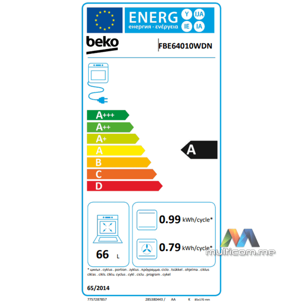 BEKO FBE64010WDN električni šporet │ 2 plinske + 2 električne ringle │ Halogena rasvjeta │ Širina: 60cm