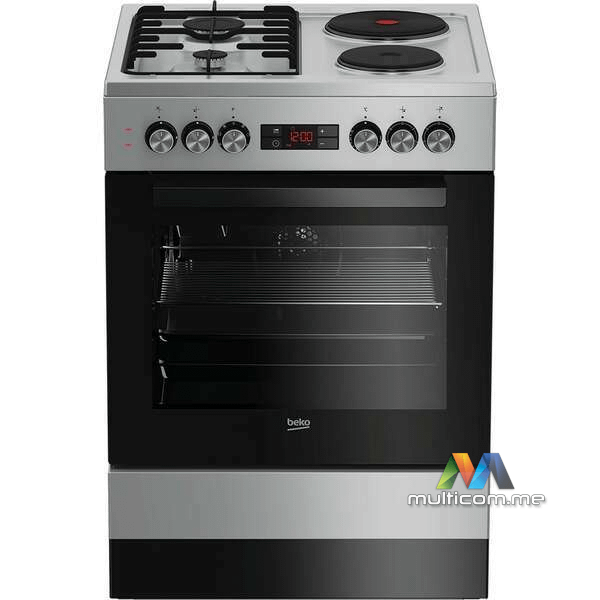 Beko FBE64320SDN kombinovani šporet │ Turbo rerna 66L │ 6 funkcija pečenja │ Energetska klasa A │ 85x60x60 cm │ 2 el. ringle (1000W, 2000W) + 2 gasna gorionika (1kW, 2.9kW)