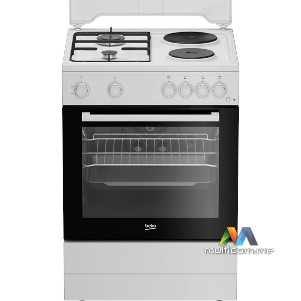 Beko FBS64010WD samostojeći šporet │ VxŠxD: 85 cm x 60 cm x 60 cm │ Zapremina rerne 73 L │ Energetska klasa A │ Čišćenje parom SteamShine® │ 2 gorionika i 2 ringle