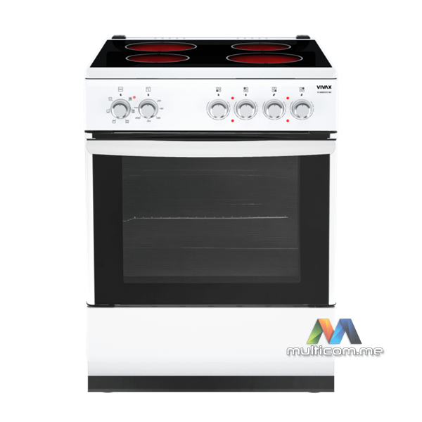 VIVAX samostojeći šporet FC-04602VCF WH je vrhunski model električnog šporeta s četiri vitrokeramičke grejne ploče.
