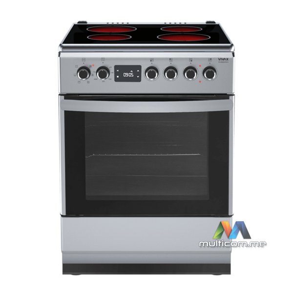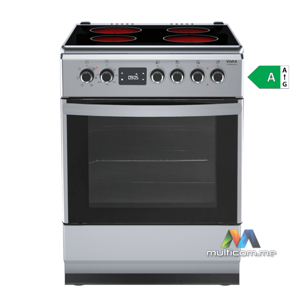 VIVAX samostojeći šporet FC-04602VCF S je vrhunski model električnog šporeta sa četiri vitrokeramičke grejne ploče.