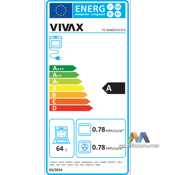 VIVAX FC-04602VCFD X samostojeći električni šporet │ Dimenzije 60×85×60 cm │ Zapremina rerne 64l │ 4x keramičke grejne ploče │ Digitalni tajmer