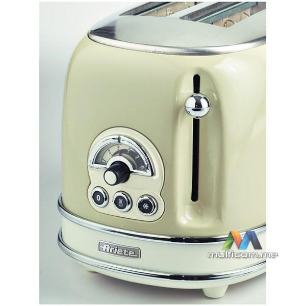 Ariete VINTAGE 155BG toster │ 6 nivoa pečenja │ Automatsko izbacivanje hljeba │ Funkcije pečenja, podgrijavanja i odmrzavanja │ Uklonjiva posuda za mrvice │ Peče 2 kriške istovremeno