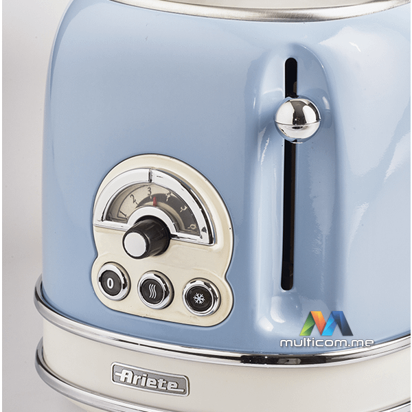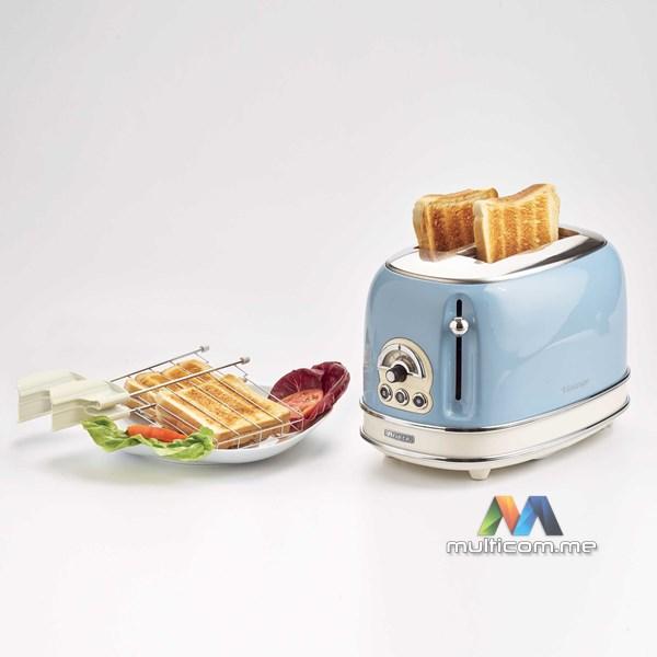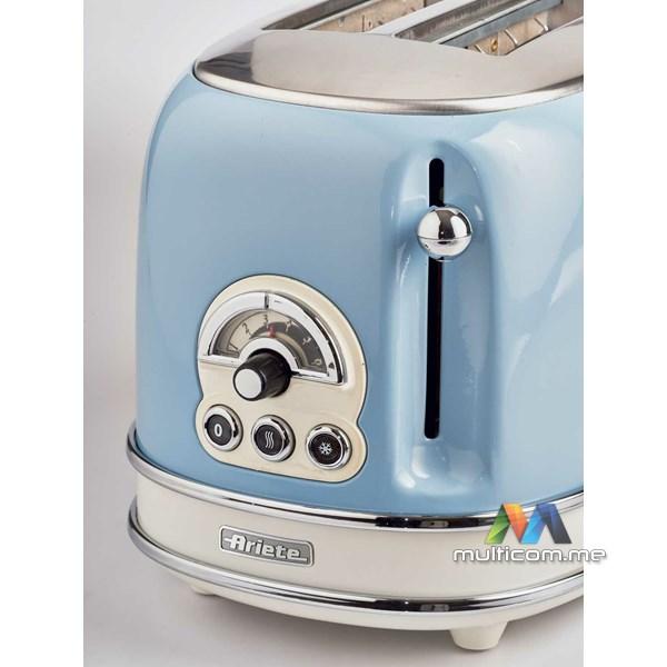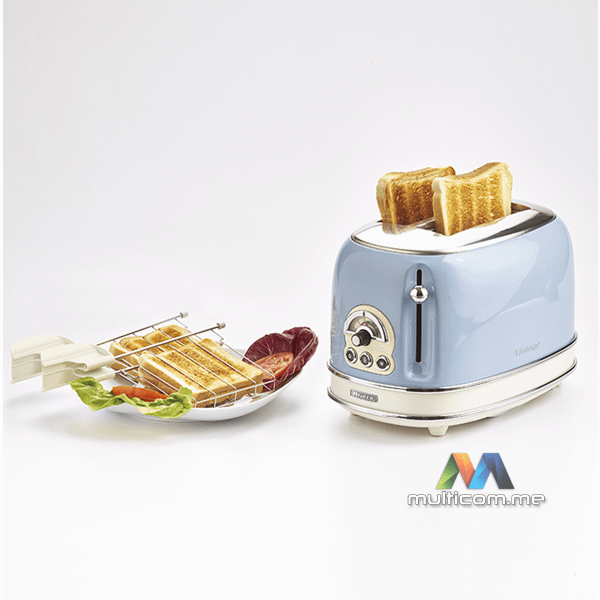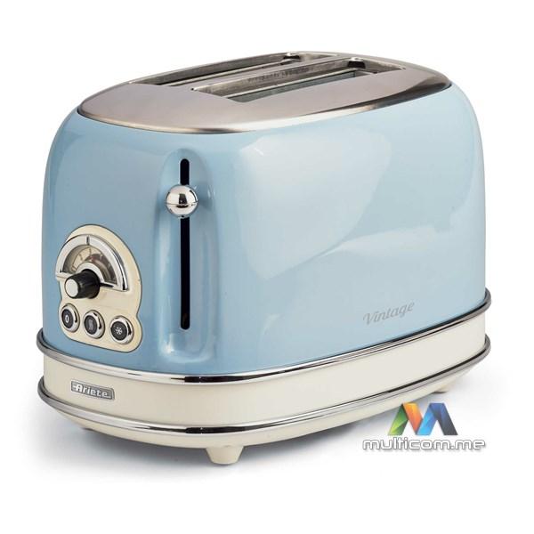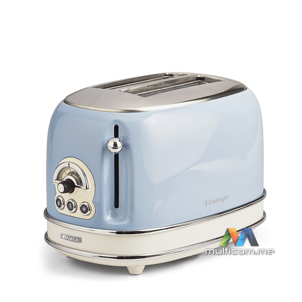 Ariete VINTAGE 155BL toster │ 6 nivoa pečenja │ Automatsko izbacivanje hljeba │ Funkcije pečenja, podgrijavanja i odmrzavanja │ Uklonjiva posuda za mrvice │ Peče 2 kriške istovremeno