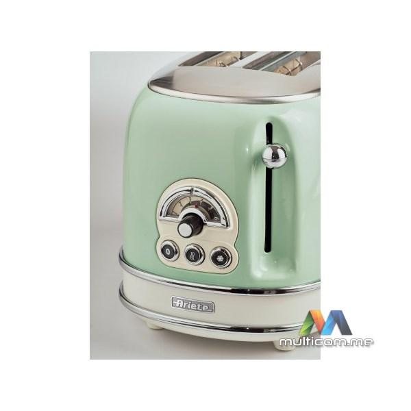 Ariete VINTAGE 155GR toster │ 6 nivoa pečenja │ Automatsko izbacivanje hljeba │ Funkcije pečenja, podgrijavanja i odmrzavanja │ Uklonjiva posuda za mrvice │ Peče 2 kriške istovremeno