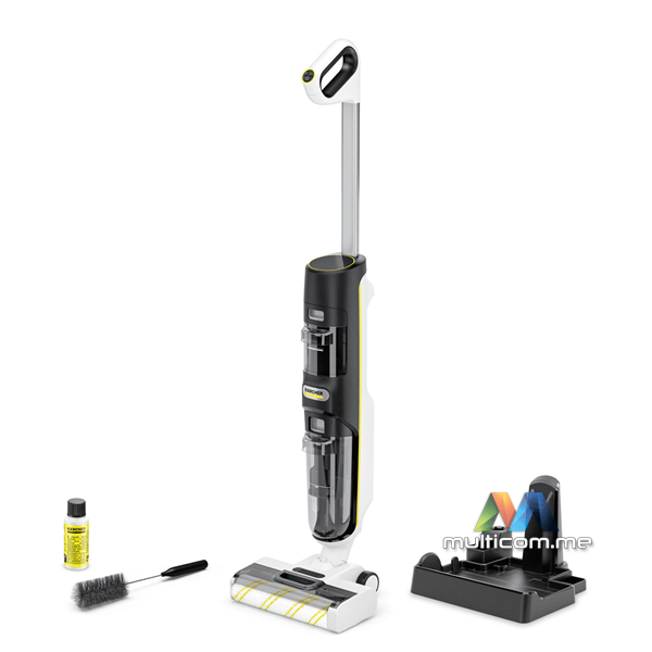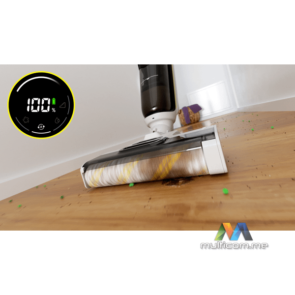 KARCHER FCV 4 štapni usisivač │ 3-u-1: usisava, briše i suši │ Uklanja do 99% bakterija │ Dugotrajna baterija do 45 minuta rada │ Perivi valjak │ Inteligentni automatski režim sa senzorom prljavštine │ Veliki 3.2-inčni ekran │ Sistem sa dva rezervoara za svježu i prljavu vodu
