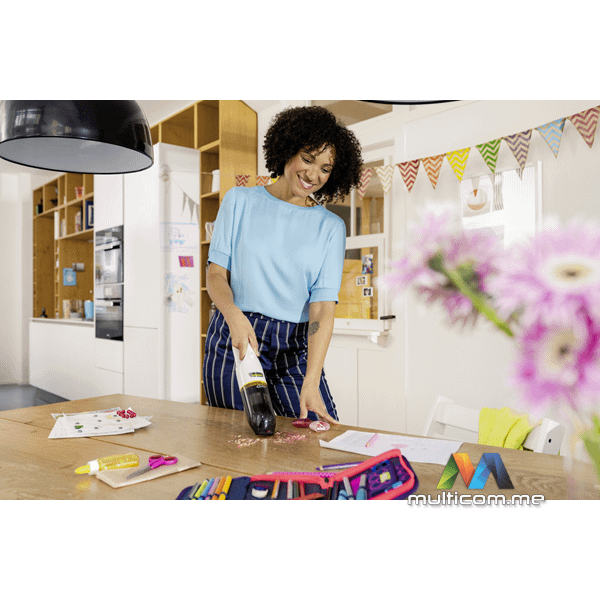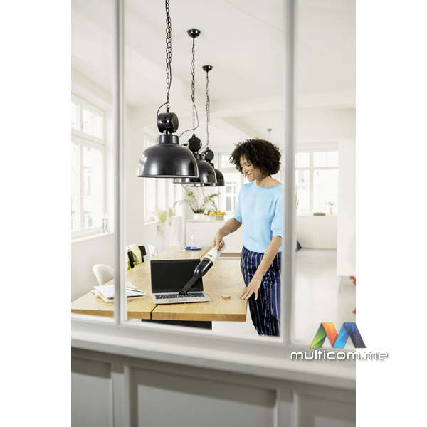 Snažan (svakodnevni) pomoćnik: bežični ručni usisivač CVH 3 Plus efikasno uklanja sve vrste prljavštine, poput dlaka, mrvica i prašine, sa bilo kojeg mjesta i bez ikakvog traga. Osim toga, dvostepeni sistem filtera koji se može prati, a sastoji se od fine čelične mrežice za krupnu prljavštinu i dlake te dodatnog HEPA filtera (EN 1822:1998), obezbjeđuje da je izduvni vazduh posebno čist. Ostale prednosti: velika snaga usisavanja i duži vijek trajanja zahvaljujući tihom BLDC motoru, kompaktan i lagan dizajn, dva različita nivoa usisavanja sa vremenom rada baterije do 20 minuta i praktična stanica za punjenje koja uključuje prostor za odlaganje dodataka.