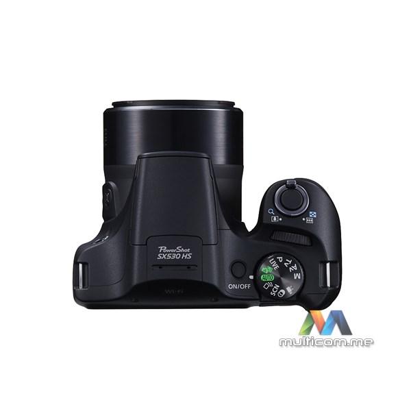 Canon PowerShot SX530 HS, 16 MP CMOS, 50x Zoom / 100x ZoomPlus, Full HD Video, 3" LCD, Wi-Fi, NFC + CMOS senzor tipa 1/2,3 sa pozadinskim osvjetljenjem Efektivni pikseli: Priblizno 16 megapiksela Procesor slike: DIGIC 4+ sa tehnologijom iSAPS Zum: Opticki zum 50x / ZoomPlus 100x Maksimalni f/broj: f/3.4–f/6.5 ISO osjetljivost: AUTO, 100, 200, 400, 800, 1.600, 3.200 LCD: TFT ekran velicine 7,5 cm (3”), priblizno 461.000 tacaka Full HD Video 1920 x 1080, 30 kadrova u sekundi GPS preko mobilnog uredjaja Hi-Speed USB (MTP, PTP) DIGITALNI prikljucak HDMI mini prikljucak A/V izlaz (PAL/NTSC) Wi-Fi (IEEE802.11b/g/n), (samo 2,4 GHz), uz podršku za Dynamic NFC Memorijska kartica: SD, SDHC, SDXC Punjiva litijum-jonska baterija – NB-6LH Garancija 1 godina