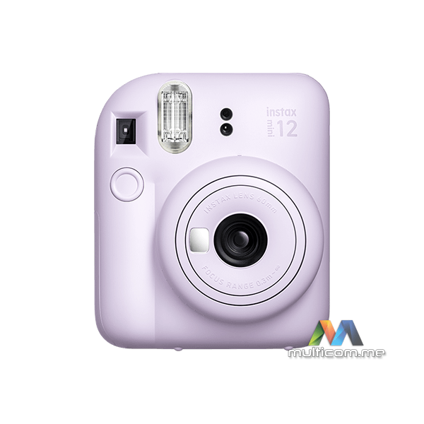 Fujifilm Instax Mini 12 Lilac Purple instant kamera sa W/10SH Glossy papirom │ ISO osetljivost: 5 - 14.5 │ Veličina slike: 86 x 54 mm │ Maksimalna fokalna dužina (ekvivalent filma od 35mm): 60 mm │ Veličine filma: 62 x 46 mm │ Struktura objektiva: 2/2 │ Prioriteti blende AE │ Najveća brzina zatvarača fotoaparata: 1/2 s │ 2xAA baterije