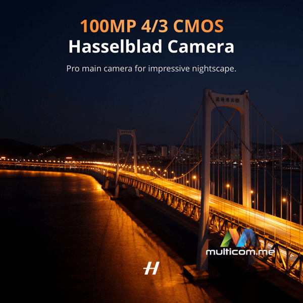 Revolucionarna 100MP Hasselblad kamera: Veliki 4/3 CMOS senzor sa HNCS bojama i promjenljivim otvorom blende f/2.0-f/11 za beskompromisni kvalitet slike i kreativnu fleksibilnost.