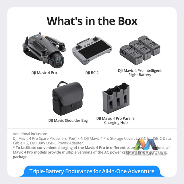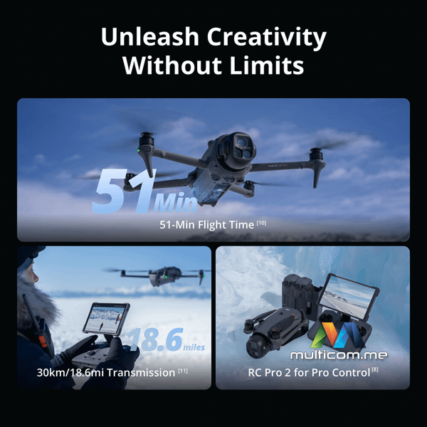DJI Mavic 4 Pro Fly More Combo + DJI RC 2 │ 100MP Hasselblad kamera │ Trostruki sistem kamera │ Infinity Gimbal 360° │ 6K/60fps HDR │ 4K/120fps slow motion │ ActiveTrack 360° │ Let do 51 minuta │ O4+ 10-bit HDR video prenos