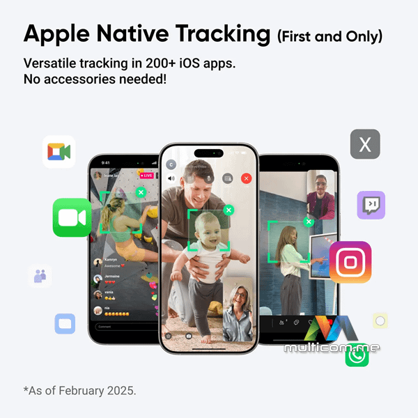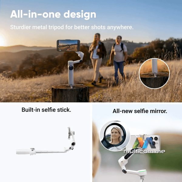 Grupno praćenje: Jedini gimbal s praćenjem više osoba, savršen za grupne snimke. Podržano na iPhone 12 i novijim modelima.