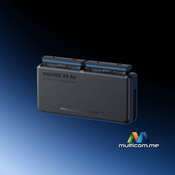 Insta360 X4 Air Utility Fast Charge Case │ Podržava PD brzo punjenje do 80% za 32 minuta │ Tanak i kompaktan dizajn │ Ugrađeni USB-C kabl │ Puni dvije baterije u kutiji i jednu u kameri istovremeno
