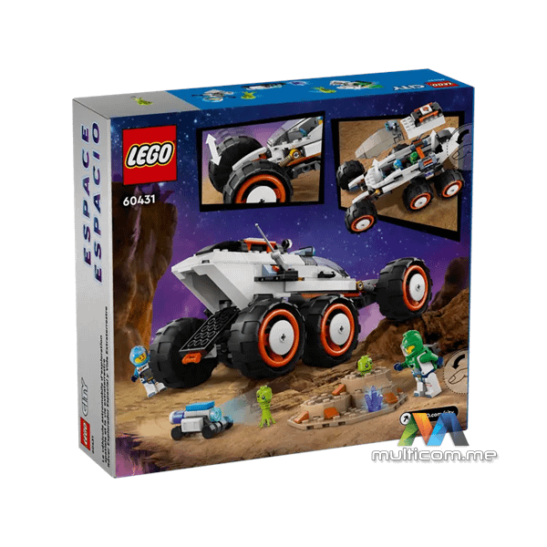 Kretanje po novim svjetovima je dječja igra sa ovim LEGO® City Space Explorer Roverom i setom igračaka Alien Life (60431) za uzrast od 6+. Čvrsto vozilo za istraživanje svemira opremljeno je sa 6 velikih guma i naprednim ovjesom za krstarenje po kamenitom planetarnom terenu. Djeca se mogu pridružiti posadi dok mapiraju površinu planete i otkrivaju čudne parne gejzire i vanzemaljski život. Ovaj zabavni set uključuje 2 minifigure svemirske posade, te figure robota i vanzemaljaca.