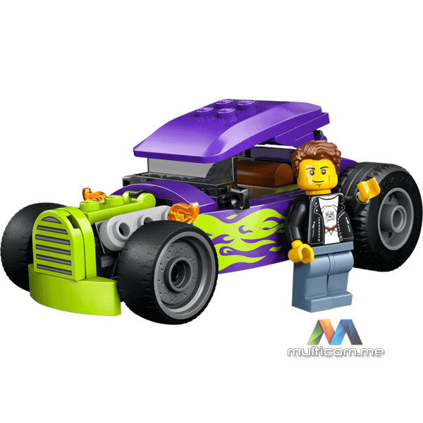 Mladi ljubitelji trkačkih automobila uzrasta 5 godina i više mogu se pripremiti za akciju brze trke sa LEGO® City Hot Rod igračkom automobila (60485). Ovaj model automobila donosi uzbudljive trenutke sa detaljima trkačkih karakteristika uključujući prevelike zadnje gume, kokpit za vozača sa krovom koji se podiže i kul ljubičasti dizajn sa neon zelenim plamenovima. Samo dodajte minifiguru vozača za brzu igru pretvaranja. Ovaj mali set za igru je odličan poklon za rođendan ili iznenađenje za djecu, dječake i djevojčice koji vole klasične igračke automobile, građenje i maštovito pripovijedanje. Dodajte ovaj set drugim (prodaju se zasebno) iz LEGO City asortimana za još uzbudljiviju trkačku akciju. Sa ovim LEGO hot rod setom, djeca mogu uživati u intuitivnom građenju uz LEGO Builder aplikaciju, zumiranju i rotiranju sa 3D uputstvima, dok čuvaju i prate napredak. Set sadrži 81 dio.
