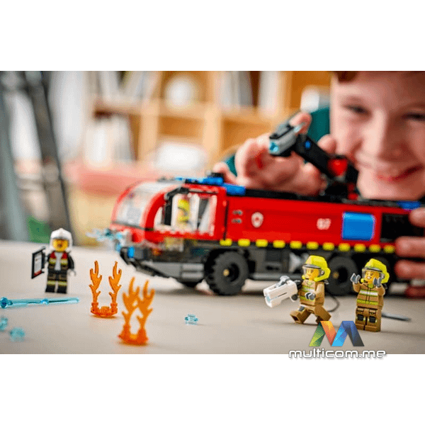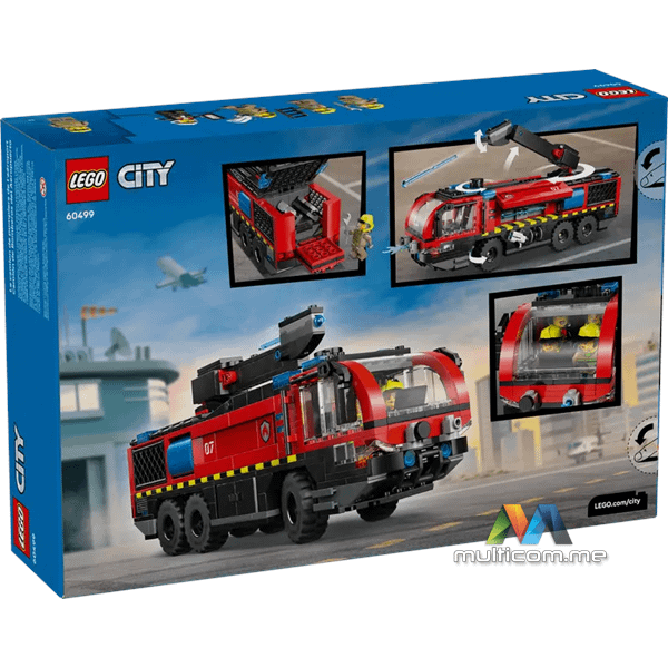 Mobilizuj LEGO® City Aerodromski Vatrogasni Kamion (60499) za djecu uzrasta 7 godina i više. Ova realistična igračka hitnog vozila ima 360° krovni aparat za gašenje, otvarajuće bočne odjeljke za opremu i pretince za skladištenje alata. Djeca mogu okrenuti dugme za upravljanje kamionom, ispaliti vodene elemente iz aparata za gašenje i ukloniti motor radi popravki. Igračka kamion dolazi sa 8 velikih gumenih guma i detaljnom kabinom sa sjedištima za 4 figurice vatrogasaca. Dodajte samo malo mašte kako biste zapalili sate herojske vatrogasne avanture. Ovaj set za izgradnju kamiona čini sjajan poklon za rođendan ili bilo koji dan za djecu koja vole praktičnu igru. Koristite ga sa drugim LEGO City setovima (prodaju se zasebno) za još veće avanture. Djeca mogu graditi sa povjerenjem koristeći LEGO Builder aplikaciju gdje mogu zumirati, rotirati u 3D i pratiti napredak uz lako pratljive digitalne instrukcije. Set sadrži 691 dio.