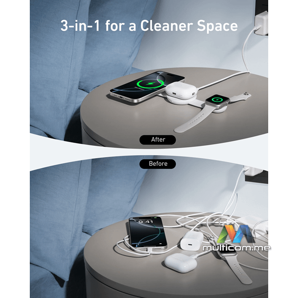 ANKER B25M8H21 MagGo bežični 3-u-1 sklopivi punjač