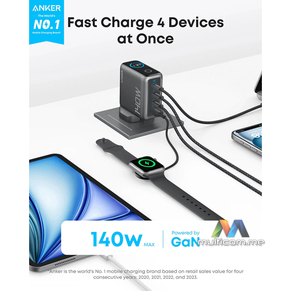 Brzi punjač za četiri uređaja: Uživajte u pogodnosti punjenja četiri uređaja istovremeno uz našu naprednu GaN tehnologiju za optimalne performanse.