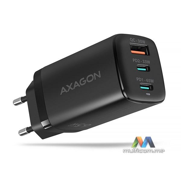 Axagon ACU-DPQ65 GaN wallcharger 3x port (USB-A + 2x USB-C), PD3.0 / PPS / QC4+ / SFC2.0 / AFC / SCP / FCP / Apple. Ukupna snaga 65W