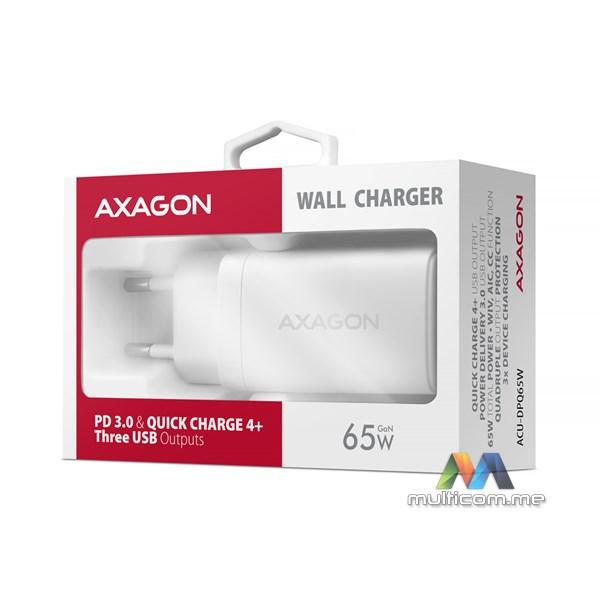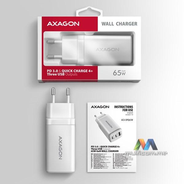 Axagon ACU-DPQ65W GaN wallcharger 3x port (USB-A + 2x USB-C), PD3.0 / PPS / QC4+ / SFC2.0 / AFC / SCP / FCP / Apple. Ukupna snaga 65W