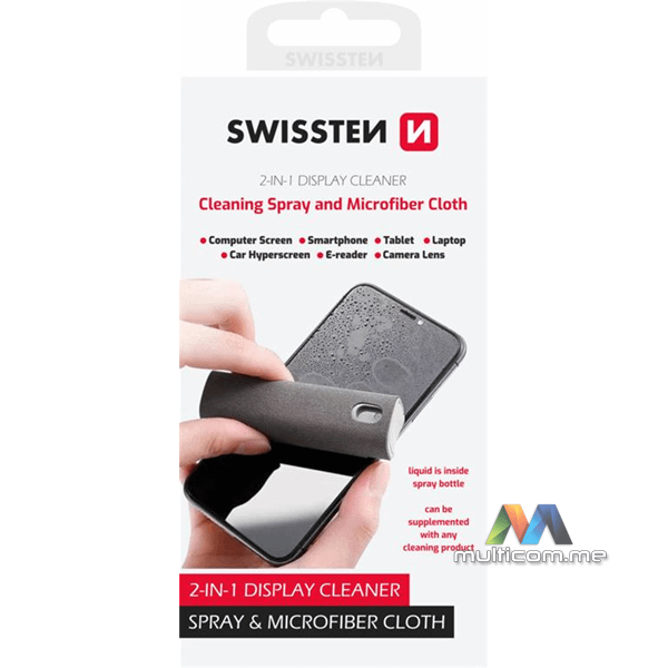 SWISSTEN Univerzalni čistač 2u1 │ Materijal: Mikrovlakna │ Dimenzije: 29 x 26 x 93 mm │ Zapremina: 10 ml (120 prskanja) │ Upotreba: Prskanje i brisanje integrisanom krpom