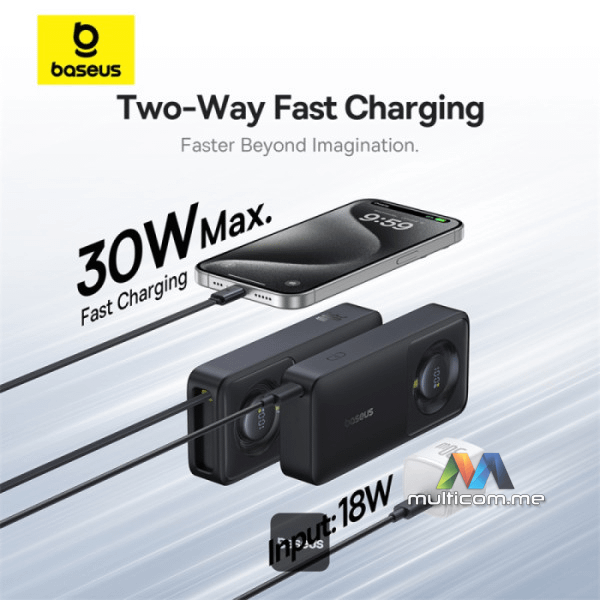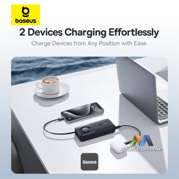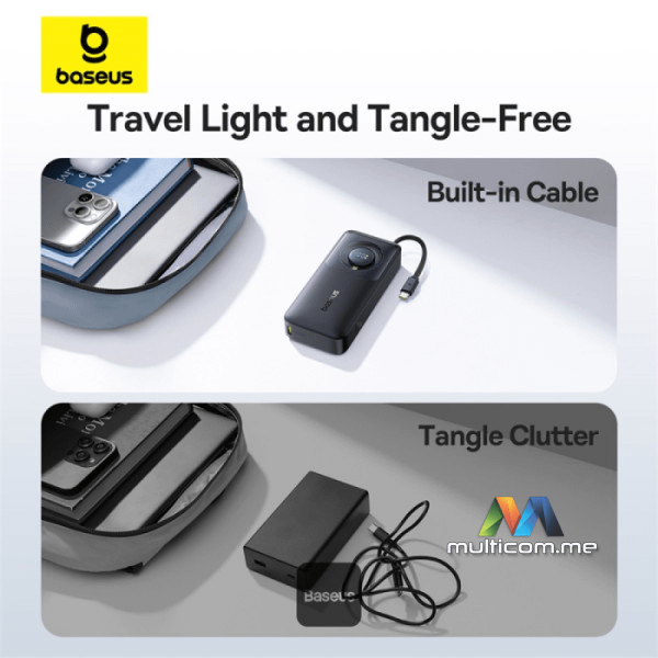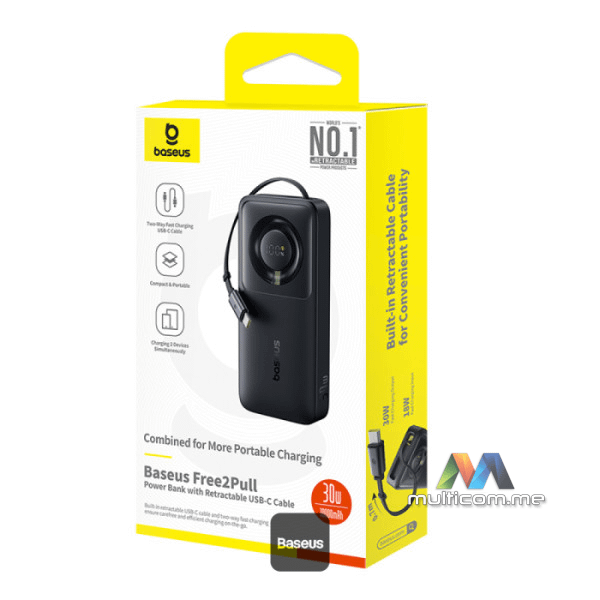 Baseus Free2Pull 10000mAh Power Bank │ 10000mAh kapacitet │ 30W brzo punjenje │ Ugrađeni Type-C kabl (uvlačivi) │ LED ekran │ Kompaktni dizajn │ Zaštita od prenapona i kratkog spoja