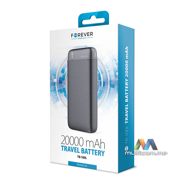 Forever TB-100L 20000 mAh black power bank │ Kapacitet: 20.000 mAh │ Izlaz: USB 5V/2A │ LED indikatori statusa napunjenosti