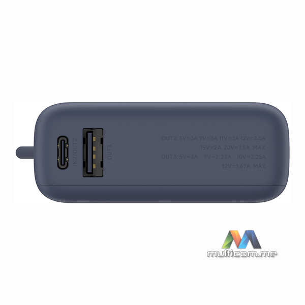 | Ulazni parametri | USB-C integrisani kabl (IN1) 5V⎓3A 9V⎓3A 12V⎓2.5A USB-C (IN2) 5V⎓3A 9V⎓3A 12V⎓2.5A |