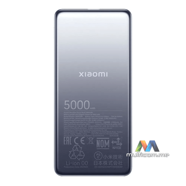 Xiaomi Ultra Slim Power Bank 5000mAh │ ~93g težina │ 20W MAX brzo punjenje │ USB-C dvosmjerno punjenje │ 5000mAh kapacitet │ 9 nivoa zaštite