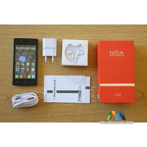 NOA C25 DUAL SIM, 4" IPS 800x480, MTK 6572 DualCore 1.2GHz, 512MB RAM, 4GB interne mem., Dual CAM: prednja 2MPx + zadnja 5MPx, BT, WiFi, baterija 1500 MAh, Android OS
