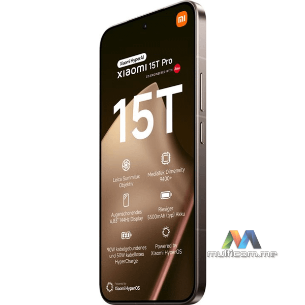 Xiaomi 15T Pro 12GB 512GB Mocha Gold smartphone │ Leica trostruka kamera sa Summilux sočivima │ Leica 5X pro telephoto │ 6.83" 144Hz 3200nits ekran │ 5500mAh baterija │ 90W Hypercharge i 50W bežično punjenje │ MediaTek Dimensity 9400+ procesor