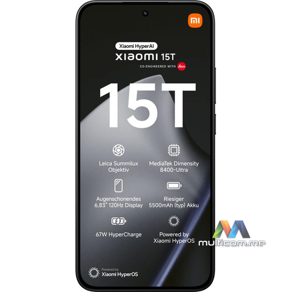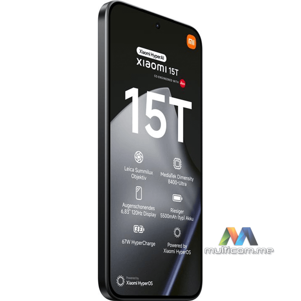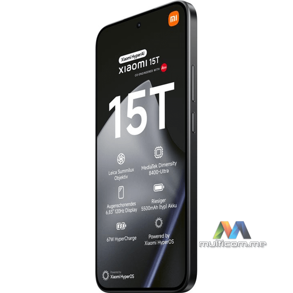 Xiaomi 15T 12GB 512GB Black smartphone │ Leica trostruka kamera sa Summilux sočivima │ 6.83" 120Hz AMOLED ekran │ 5500mAh baterija sa 67W brzim punjenjem │ MediaTek Dimensity 8400-Ultra