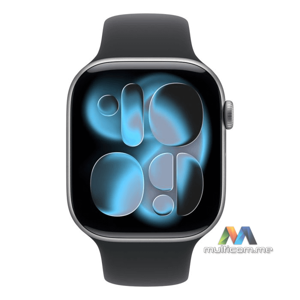 Apple Watch S11 GPS 46mm Space Grey Aluminium Case with Black Sport Band - M / L │ Trajanje baterije do 24h │ Napredni senzori za zdravlje │ Izdržljiv Ion-X ekran │ Vodootpornost do 50 metara │ Praćenje fizičke aktivnosti