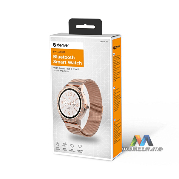 DENVER SW-360RO smartwatch pametni sat │ Bluetooth povezivanje │ Senzor za otkucaje srca │ 1.22” dodirni ekran │ Praćenje sportskih aktivnosti i sna │ Prikaz poruka i poziva │ Punjiva baterija 220mAh