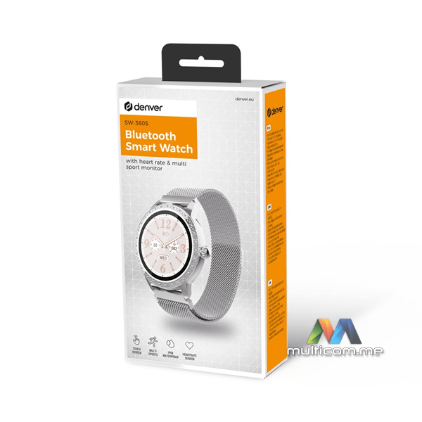 DENVER SW-360S smartwatch pametni sat │ Bluetooth povezivanje │ Senzor za otkucaje srca │ 1.22” dodirni ekran │ Praćenje sportskih aktivnosti i sna │ Prikaz poruka i poziva │ Punjiva baterija 220mAh