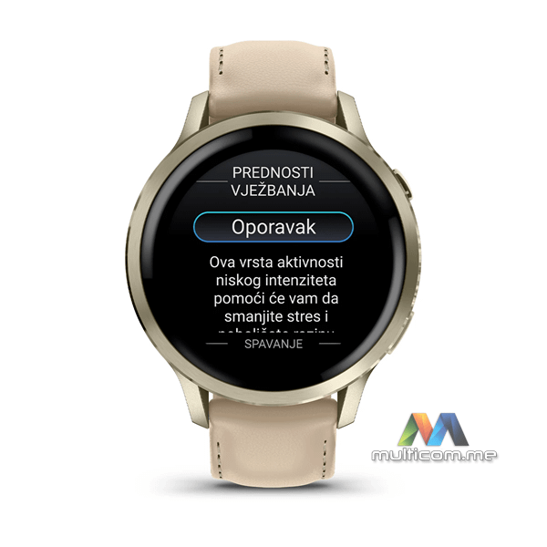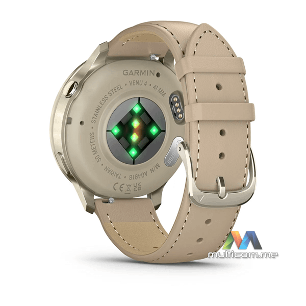 GARMIN VENU 4 41mm Krem-zlatni sa bež silikonskim remenom i kožnim remenom svijetle boje pijeska smartwatch │ 1.2-inčni AMOLED ekran │ Do 10 dana trajanja baterije │ Napredne funkcije za zdravlje i fitnes │ Svijetla LED lampa