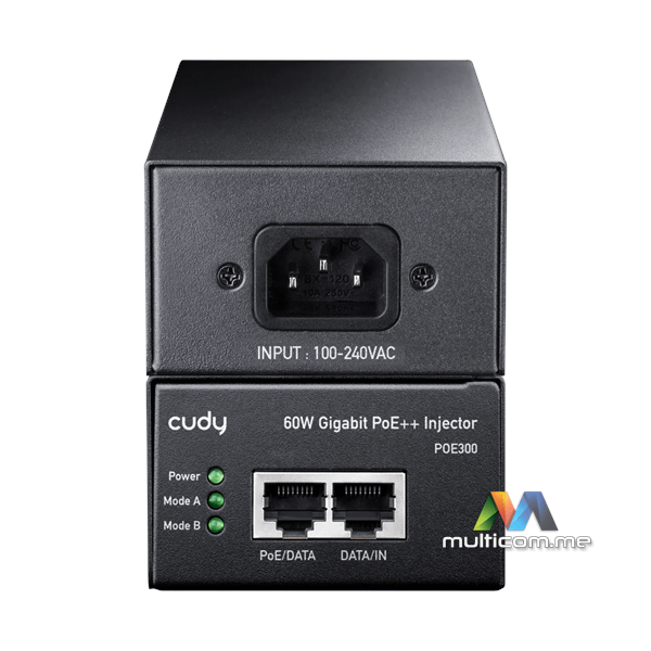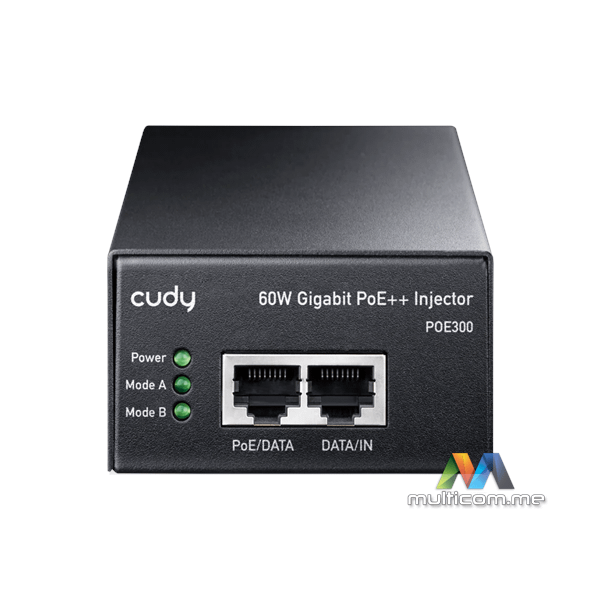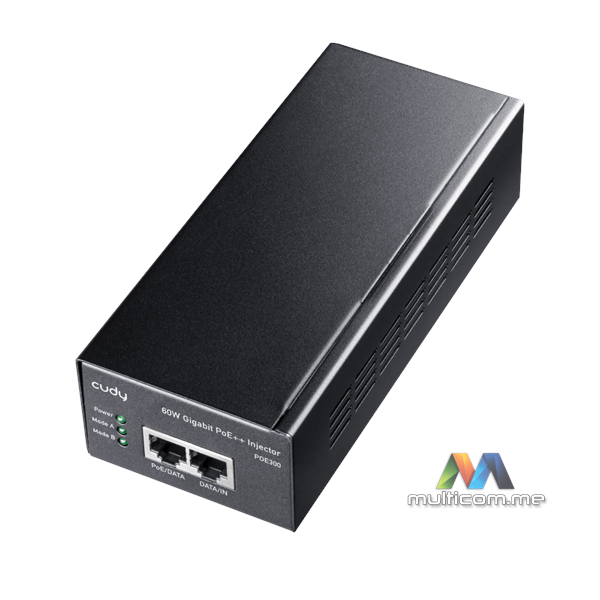 CUDY 60W Gigabit PoE++ Injector │ Metalno kućište │ Montaža na zid │ Do 60W snage │ GbE Ulaz i Izlaz │ 100m Domet Prenosa │ 802.3bt/at/af standardi