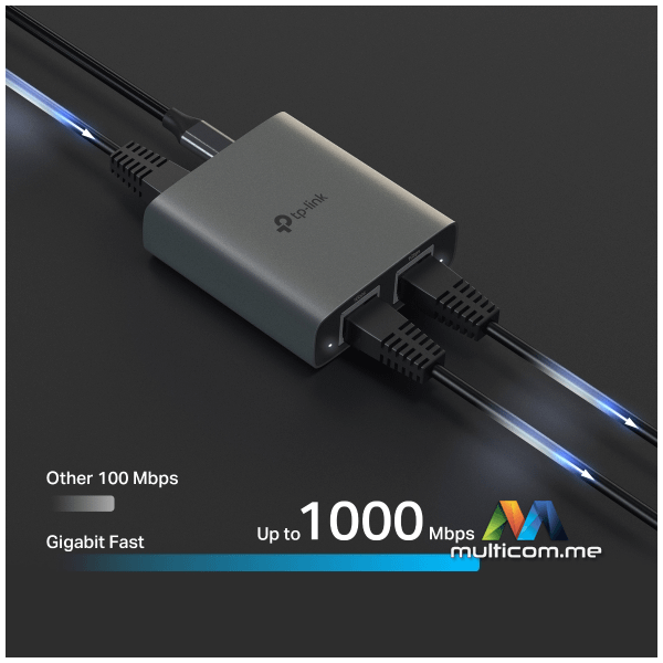 1000Mbps Brzi Prenos: Podržava maksimalno 1000M Ethernet mrežne veze, i unazad kompatibilnost sa brzinama mreže od 100Mbps/10Mbps.