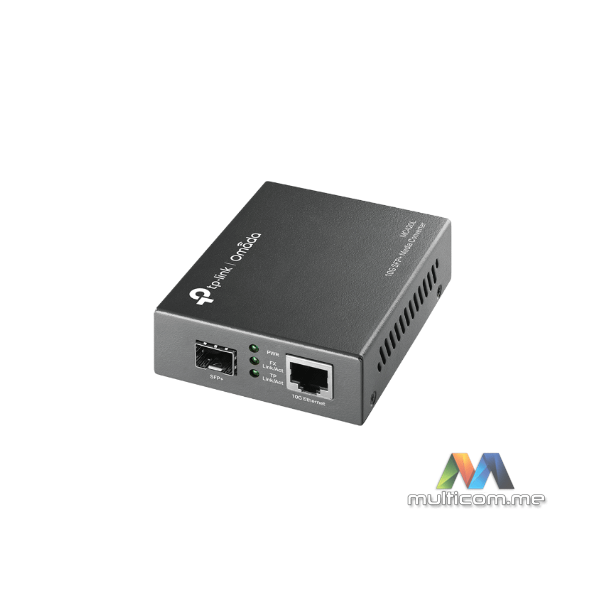 MC420L je medijski konverter dizajniran da konvertuje između 10GBASE-SR/LR optičkih vlakana, 10GBASE-LRM optičkih vlakana i 10GBASE-T bakarnih medija. Lako produžava distancu postojeće gigabitne mreže putem optičkih vlakana kada se integriše sa SFP modulom. MC420L primjenjuje IEEE 802.3ae 10GBASE-SR/LR 10G Ethernet & IEEE 802.3an 10GBASE-T 10G Ethernet standarde kao dio svoje namjene sa multi-mode/single-mode SFP modulom. Dugoročne point-to-point veze se lako uspostavljaju sa gigabitnim optičkim konverterima, čineći ih idealnim za mrežne veze između više zgrada, za daljinski nadzor i automatizovanu fabričku opremu. MC420L nudi fleksibilnu instalaciju na samostalnim desktop računarima ili umetnut u šasiju (TP-Link-ov MC1400). Lako vidljive LED diode na prednjoj ploči pružaju informacije o statusu u realnom vremenu za praćenje trenutne mrežne aktivnosti. Maksimalna udaljenost prenosa optičkih vlakana zavisi od umetanja SFP modula.