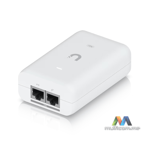 Ubiquiti 2.5G PoE+ Adapter (30W) │ Napajanje UniFi PoE+ uređaja │ Multi-Gigabit LAN veza │ Isporučuje do 30W PoE+ │ Zaštita od prenapona i prekomjerne struje │ RJ45 ulaz i PoE+ izlaz