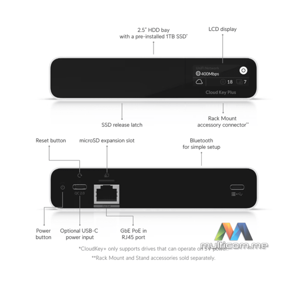 UBIQUITI CloudKey+ (UCK-G2-SSD) │ 1TB SSD │ 3 GB RAM │ PoE / USB-C napajanje │ OLED ekran │ Bluetooth setup │ UniFi aplikacije (Network, Protect, Access, Talk, Connect)