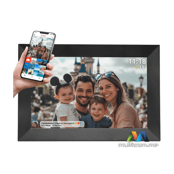 10.1” digitalni Wi-Fi foto ram sa FRAMEO softverom za fotografije Ovo je novi društveni način da dijelite slike sa prijateljima i porodicom. IPS ekran osjetljiv na dodir pruža oštre slike