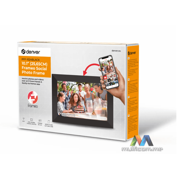 DENVER PFF-1024BMK2 Black digitalni ram │ 10.1” IPS touchscreen ekran │ Rezolucija 1280x800 │ Wi-Fi povezivanje │ 16GB ugrađene memorije │ Tajmer za automatsko isključivanje │ Personalizacija opisa fotografija