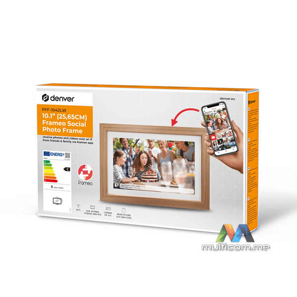 Denver PFF-1042LWMK3 digitalni ram │ 10.1” 1280x800px ekran osjetljiv na dodir │ Wi-Fi povezivanje │ 16GB ugrađene memorije │ Dijeljenje fotografija i videa │ Prirodno hrastovo drvo │ FRAMEO softver