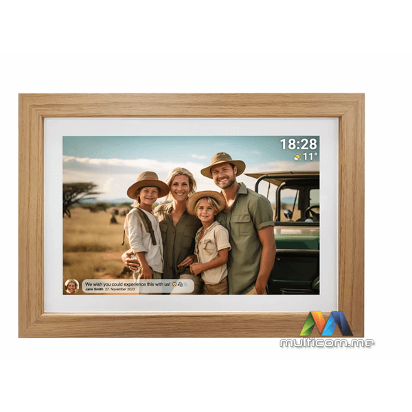 Elegantni dizajn i memorija: Prikazujte uspomene na 10.1’’ IPS ekranu sa rezolucijom 1280x800, uz 16GB memorije u okviru od hrastovog drveta.